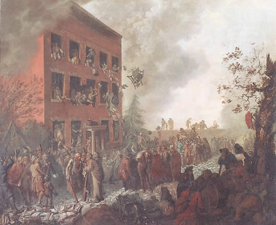[Click on image to enlarge] The apocalyptic and millennial books in the Bible are readily convertible into a scenario for political revolution, since they consist of an infallible text ordaining a necessary destruction of the forces of evil and guaranteeing the outcome of this violence in peace, plenty, and consummate happiness. In the Civil Wars in seventeenth-century England, for example, there were fervent apocalyptic expectations among radical parliamentary sects that were shared by Oliver Cromwell, as well as by John Milton. The late eighteenth century was another age of widespread apocalyptic expectation, when the promise of the American Revolution, followed by the greater and more radical expectations raised by the early years of the French Revolution, revived among a number of English Nonconforming sects the millenarian excitement of Milton and other seventeenth-century predecessors. "Hey for the New Jerusalem! The millennium!" Thomas Holcroft exulted in 1791. >>(See C. Kegan Paul, William Godwin: His Friends and Contemporaries (London, 1876), 1:69.) Preachers such as Richard Price, Joseph Fawcett, and Elhanan Winchester, as well as Joseph Priestley, who was not only a great chemist but a founder of the Unitarian Society, all interpreted the convulsions in France in terms of the prophecies in both the Hebrew and the Christian Scriptures. They thus invested the political events of the day with the explosive power of the great Western myth of apocalypse and expanded a local phenomenon into the expectation that humanity, everywhere, was at the threshold of an earthly paradise.