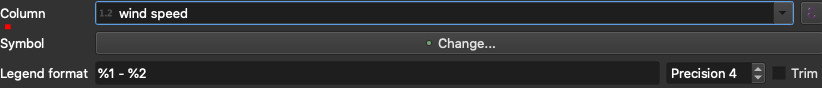 Now, select “wind speed” (or whatever you named the wind speed column) as the “Column” (or “Value”) by clicking the drop-down menu arrow button on the right-hand side of the window and selecting the “wind speed” field from the resulting list.